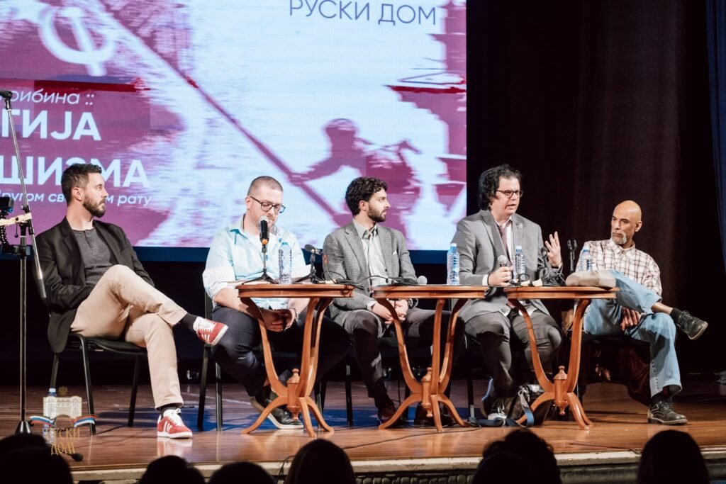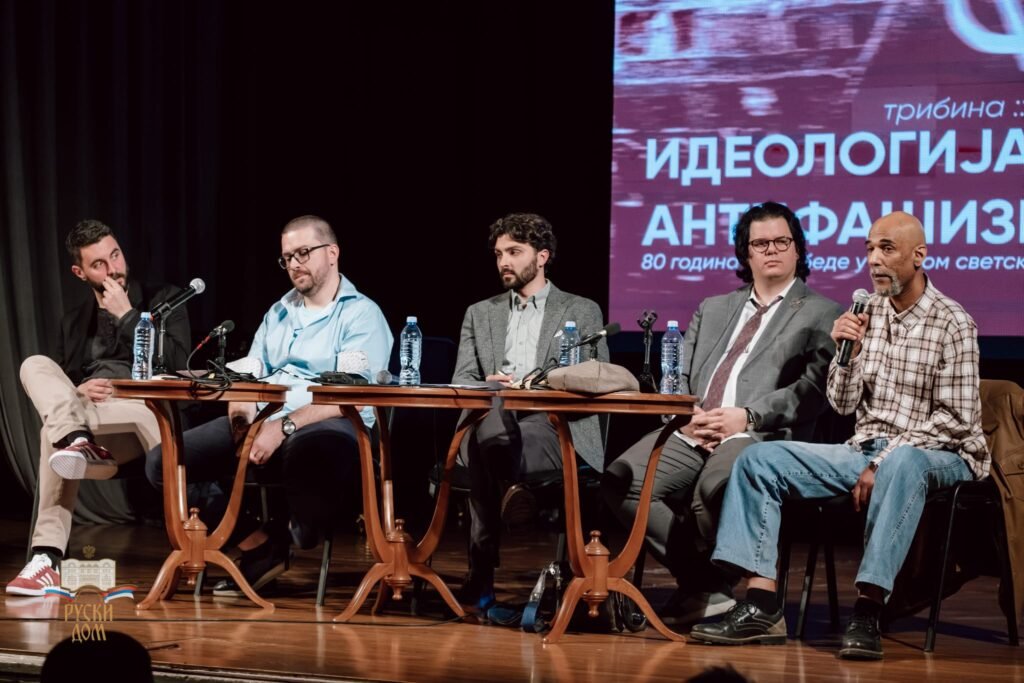 Трибина под називом „Идеологија антифашизма: 80 година од победе у Другом светском рату“ одржана је у уторак у великој сали Руског дома у Београду. Поводом осам деценија од завршетка највећег светског сукоба, учесници трибине: Дарко Делић, филозоф и директор Танке црвене линије, Стефан Радојковић, историчар, Абдел Рахим Кхеирауи, новинар и музичар и Никола Танасић, филозоф, размотрили су како је пораз фашизма представљен кроз идеолошке парадигме, културу, образовање, али и како се његове трансформације препознају у савременом свету.