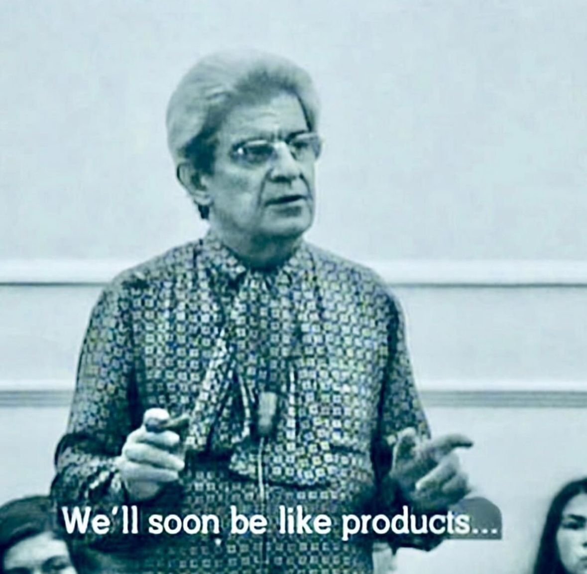 Tehnologija je idealna laž, koja pro-iz-vodi temporarne oblike/slike za čovekovu prazninu. Ona gasi život i ličnost, zatvara svet pred sobom i svodi večnost na prolaznost.
